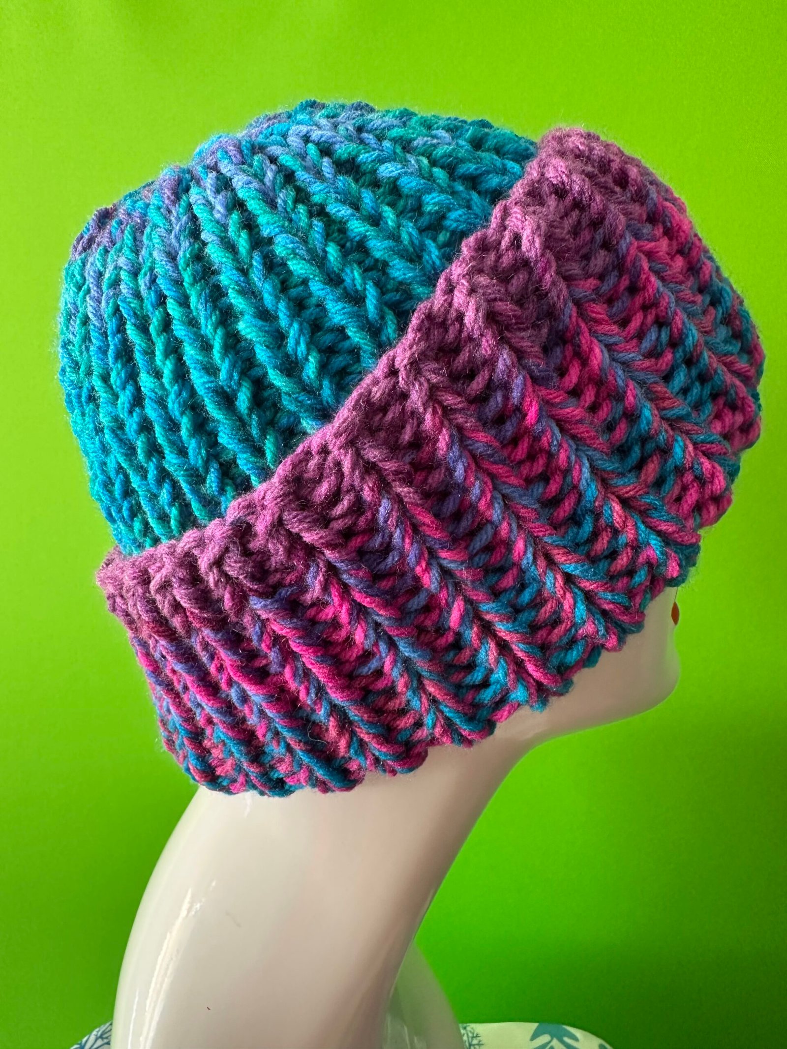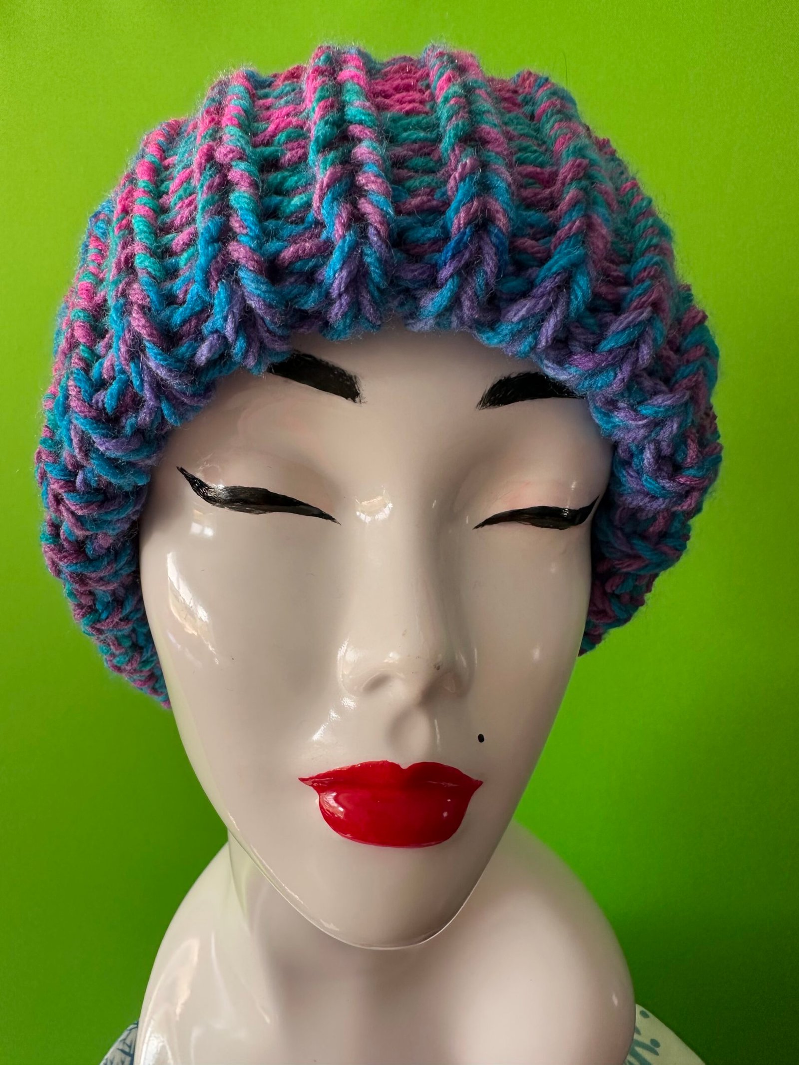 Double Stranded Knit Chunky Hat. Made with acrylic yarn. Wash and Dry safe, in warm/cold tempearture.