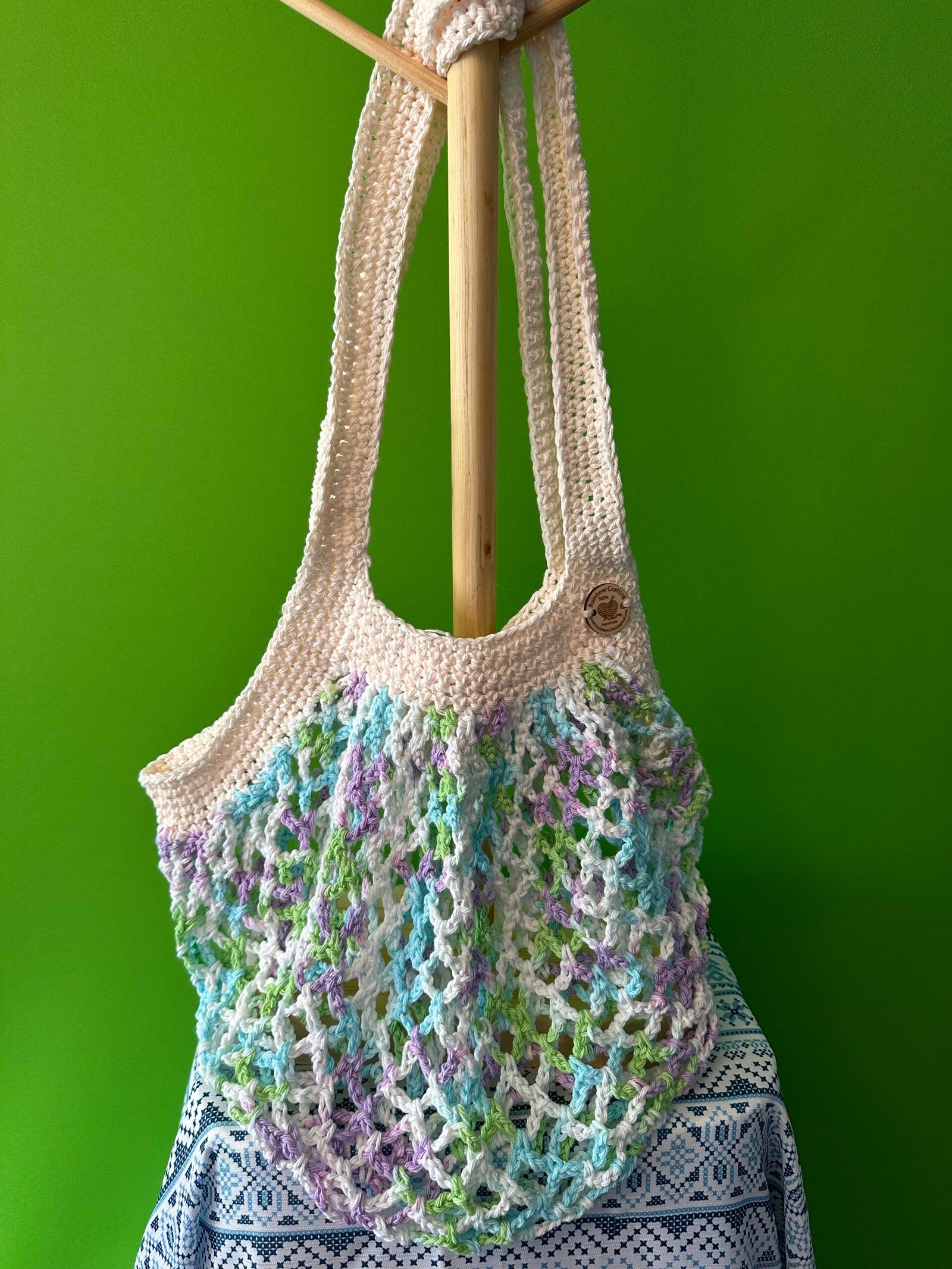 Crochet Market bag that can be used as Beach Bag, Tote Bag or for just carrying things around. Made with 100% Cotton Yarn that is Washer and Dryer safe, with warm temperatures.