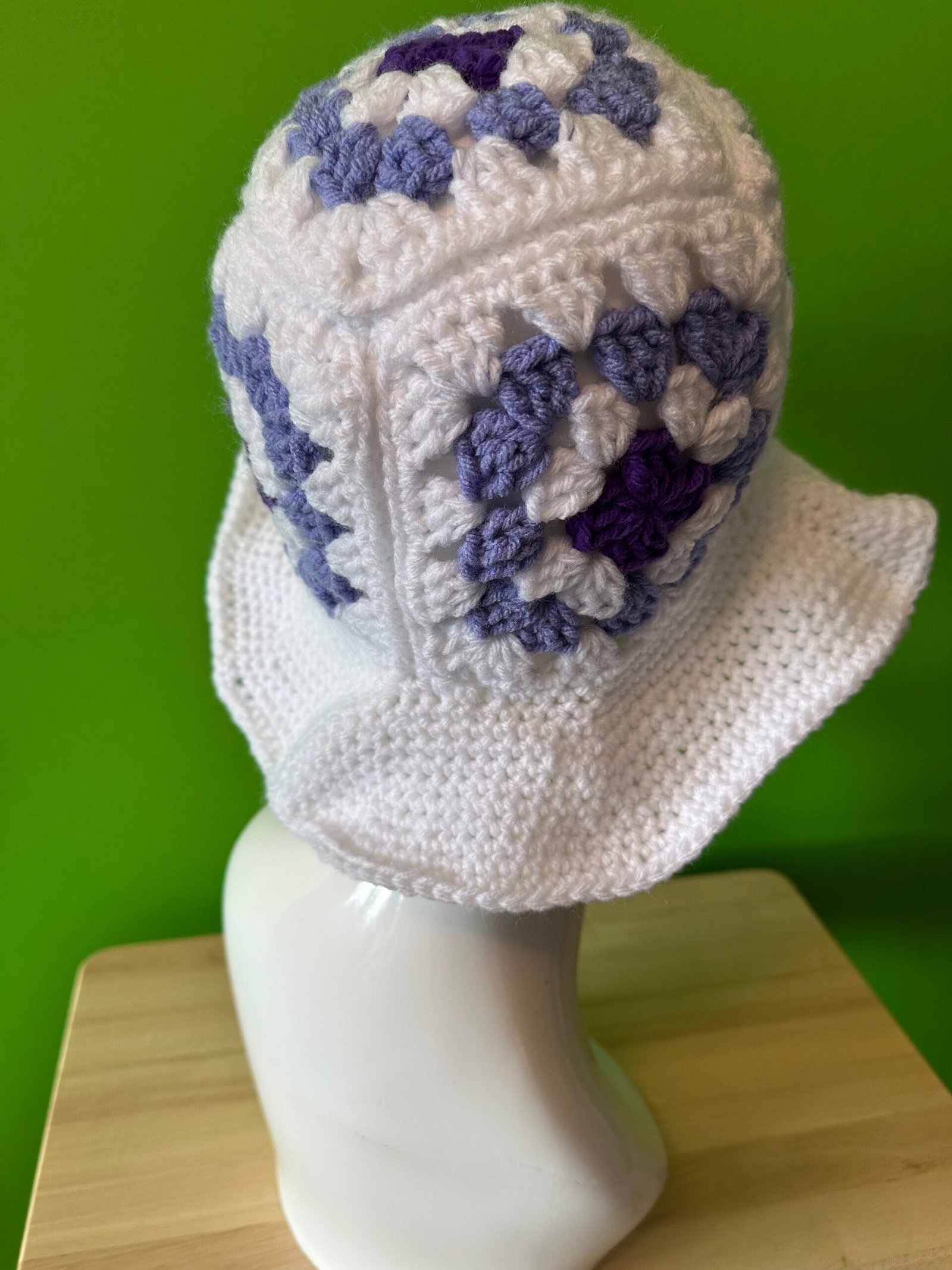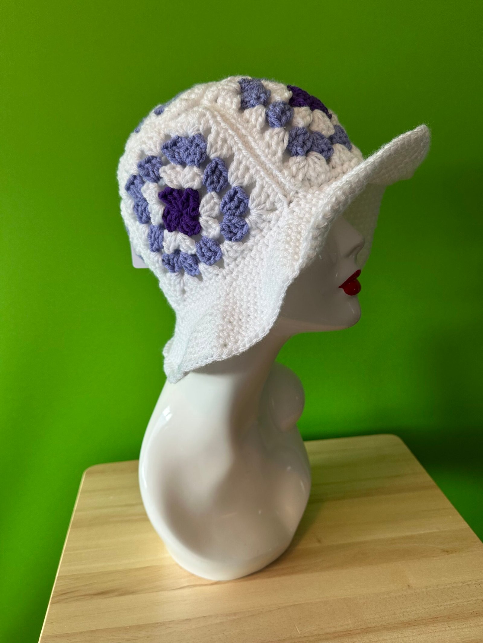 /    /  Accessories, Bucket Hat, Head Wear  /  White Granny Square Bucket Hat